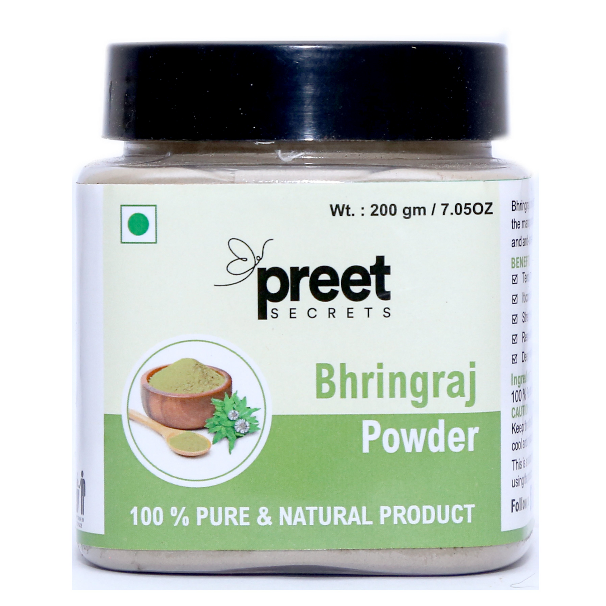 Bhringraj powder is a powerful natural remedy for hair care |Promotes hair growth, reduces dandruff | Prevents premature graying | Rich in nutrients | Bhringraj powder strengthens hair follicles | Leading to thicker and healthier hair